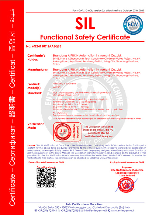 選用產品APX401-RD在線振動式粘度計